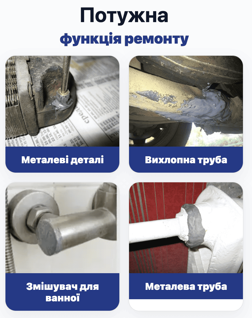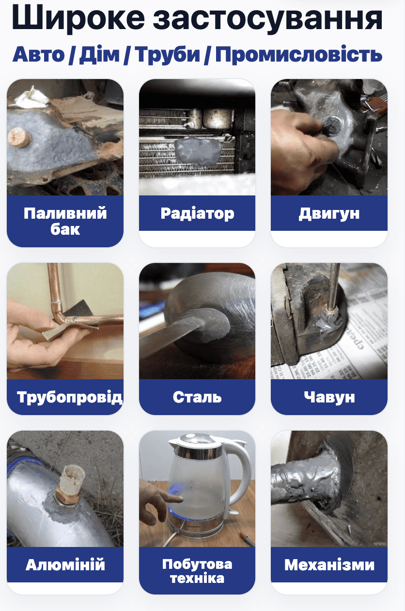 Купував для ремонту металевої труби — результат приємно здивував. Наніс, зафіксував — тримається міцно, нічого не тече. Реально виручає, коли потрібно швидко щось полагодити без зварювання.
